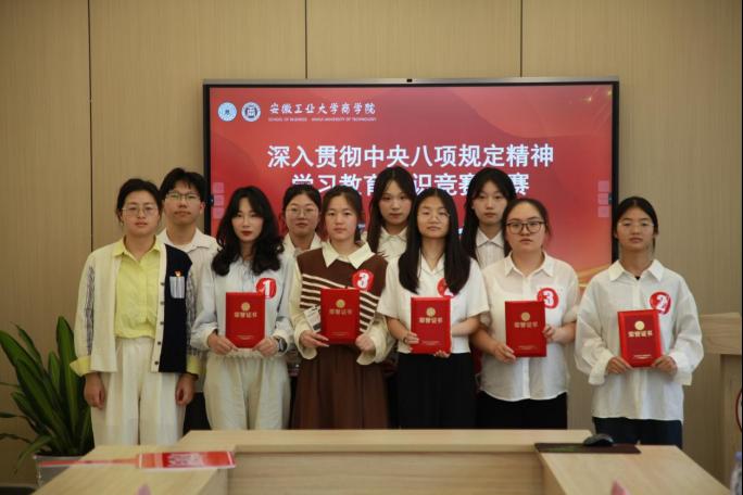 此次知识竞赛是学院开展深入贯彻中央八项规定精神学习教育的创新实践,通过以赛促学的方式,有效提升了党员的纪律意识,营造了浓厚的廉洁文化氛围,为培养德才兼备、清正廉洁的新时代人才贡献力量。(撰稿:刘潇涵 审稿:肖梦雨 李曼 蒋磊)