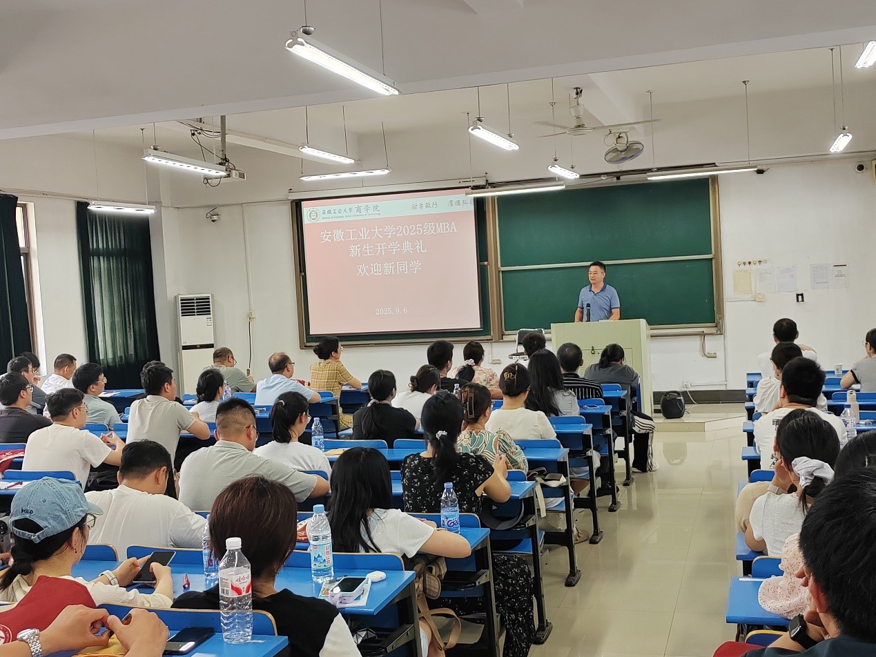院长章铁生代表学院对2025级MBA新生表示了祝贺与欢迎。章院长介绍学院目前有2个学术学位点,4个专业学位点,将会从师资配备、软硬件设备、教师培训和学生活动等方面尽全力支持MBA项目的建设,举全校之力促进MBA项目的持续发展。最后章院长希望大家在协调好自身工作、家庭和学习之间的关系,按时间点完成各阶段任务,顺利完成学业。